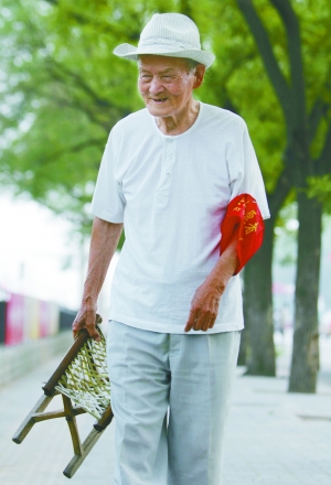 103歲的付漪泉老人每天上街巡邏! ”緢(bào)記者 韓萌 攝
