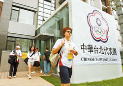 據臺灣《中國時報》報道 ,經過嚴密安檢走進奧運村,沿著中央大道步行約十分鐘就可到達中華臺北隊宿舍。一樓是團本部辦公室,二樓以上才是各單項團隊的住處。