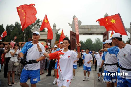 8月7日,奧運(yùn)圣火繼續(xù)在北京傳遞,宋祖英在地壇傳遞當(dāng)日最后一棒火炬。 中新社發(fā) 廖攀 攝