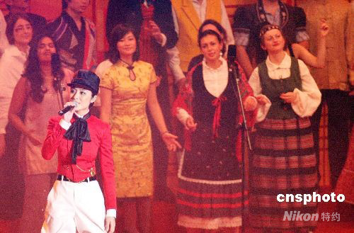 圖:歌星陳慧琳在奧運馬術歡迎晚會上高歌