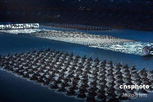 8月8日晚8時8分,第二十九屆夏季奧運會在北京的國家體育場——鳥巢隆重開幕。圖為開幕式文藝表演展現(xiàn)中國古老的活字印刷術。中新社發(fā) 任晨鳴 攝