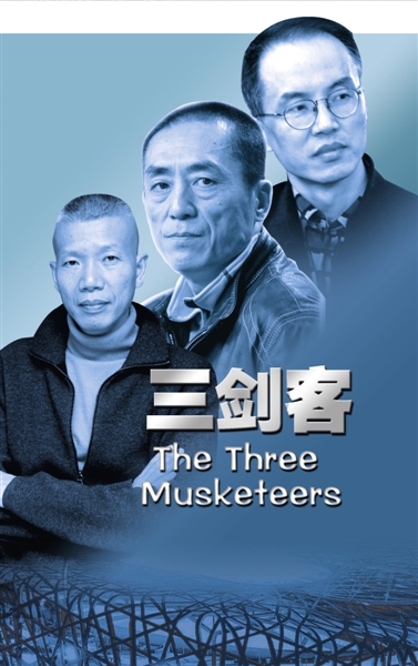 三人者:張藝謀,官拜北京奧運會開幕式總導(dǎo)演;陳其鋼,奧運音樂總監(jiān);蔡國強,視覺特效藝術(shù)總設(shè)計,主導(dǎo)焰火大戲。