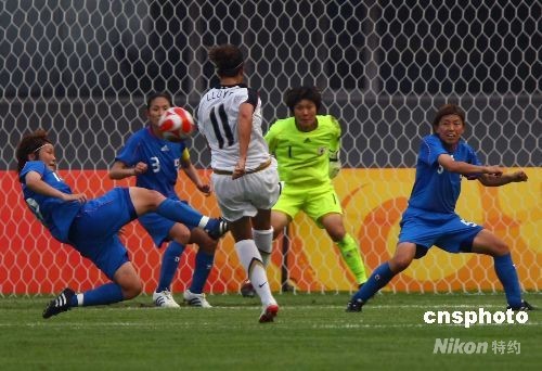 8月9日,北京奧運會足球女子預賽,美國對日本的比賽在秦皇島奧體中心舉行,最終1:0戰(zhàn)勝日本隊。中新社發(fā) 劉新 攝