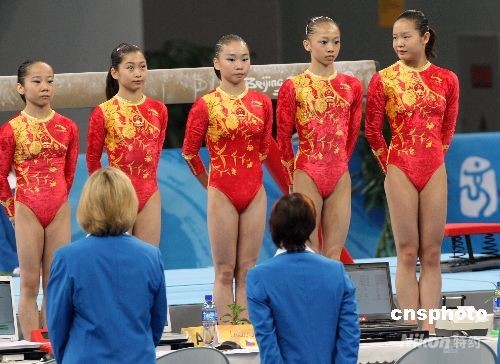 8月10日上午,北京奧運會女子體操團體資格賽在北京奧林匹克公園內的國家體育館舉行,由世界冠軍程菲領銜的中國隊由平衡木比賽開始向團體冠軍沖擊。中新社發(fā) 任晨鳴 攝