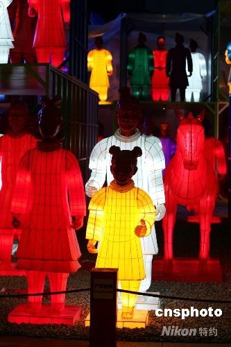 圖:北京街頭彩燈兵馬俑彰顯中華文化