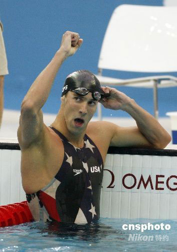 8月12日,菲爾普斯在北京奧運會男子200米自由泳比賽中,以1分42秒96的成績刷新他自己創(chuàng)造的1分43秒86的世界紀(jì)錄獲得金牌。這也是他在北京奧運會上奪得的第3塊金牌。 中新社發(fā) 杜洋 攝