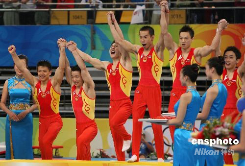 8月12日,在國家體育館舉行的男子體操團(tuán)體決賽中,中國隊以總分286.125分力壓老對手日本隊,領(lǐng)先第二名7分多的優(yōu)勢奪得體操男子團(tuán)體的冠軍,為中國體操隊贏得了開門紅,這是中國代表團(tuán)在本屆奧運(yùn)會上的第10枚金牌。 中新社發(fā) 武仲林 攝