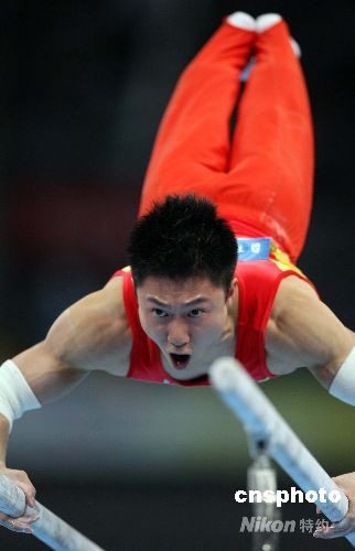 8月12日,北京奧運(yùn)會(huì)體操男子團(tuán)體決賽在國(guó)家體育館展開(kāi),中國(guó)男子體操隊(duì)繼悉尼奧運(yùn)之后再次登頂,以286.125 分獲得金牌,有中國(guó)“雙杠王”之稱(chēng)的李小鵬在雙杠比賽中獲高分。中國(guó)體操名將李小鵬也超越李寧,成為獲得世界冠軍最多的中國(guó)體操選手。李寧的世界大賽金牌為14枚,李小鵬達(dá)到15枚。 中新社發(fā) 任晨鳴 攝