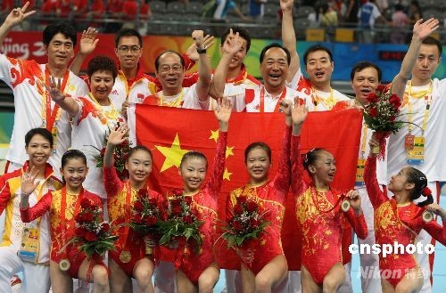 圖:中國女隊(duì)首奪奧運(yùn)體操女團(tuán)金牌