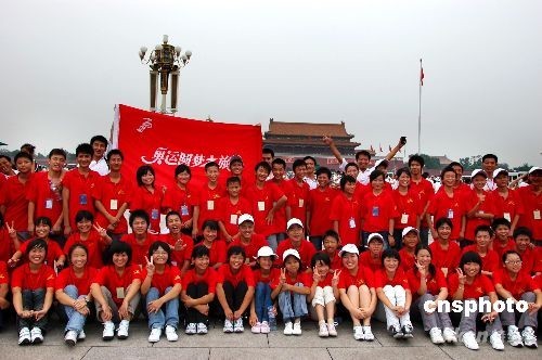 圖:百余名孤兒圓奧運(yùn)夢(mèng)天安門(mén)前留影