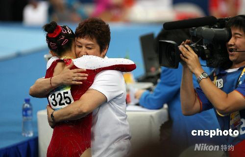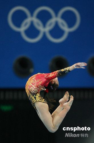 8月15日,中國選手楊伊林在北京奧運會體操女子個人全能決賽中,以62.650分獲得季軍,為中國在體操項目上增添一枚銅牌。 中新社發(fā) 武仲林 攝