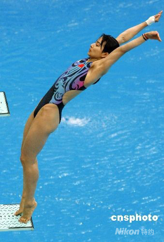 8月17日,中國選手郭晶晶在北京奧運會女子3米板跳水決賽中獲得金牌。 中新社發(fā) 杜洋 攝