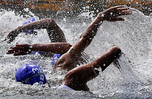 8月18日,北京奧運會鐵人三項賽,運動員在進(jìn)行游泳項目的比賽時,場面頗似舞蹈“千手觀音”。