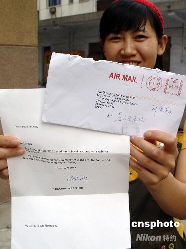 圖:英國(guó)首相布朗回函中國(guó)“奧運(yùn)夫婦”