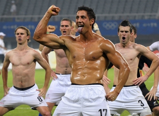 比利時(shí)國(guó)奧隊(duì)員脫去上衣大跳土著舞,男色時(shí)代“秀”身材。