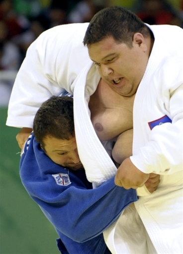 關(guān)島柔道選手太胖導(dǎo)致“走光”。