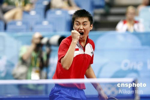 8月21日,北京奧運會乒乓球男子單打第三輪的比賽在北京大學體育館進行,中華臺北選手莊智淵3比4不敵新加坡選手揚子,無緣下一輪比賽。中新社發(fā) 盛佳鵬 攝
