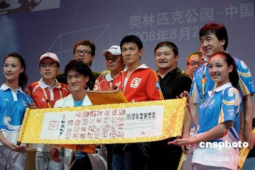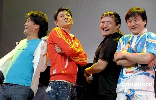 8月22日下午,明星成龍、劉歡、劉德華、周華健亮相北京奧林匹克公園,共同演唱一首《難說(shuō)再見(jiàn)》。這首動(dòng)人的歌曲將成為北京奧運(yùn)跟世界話(huà)別的標(biāo)志性符號(hào)。中新社發(fā) 陳文 攝