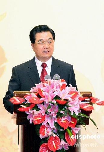 8月24日,中國國家主席胡錦濤和夫人劉永清在北京釣魚臺國賓館舉行宴會,款待前來出席北京奧運會閉幕式的國際貴賓。胡錦濤在宴會上致辭。中新社發(fā) 廖文靜 攝