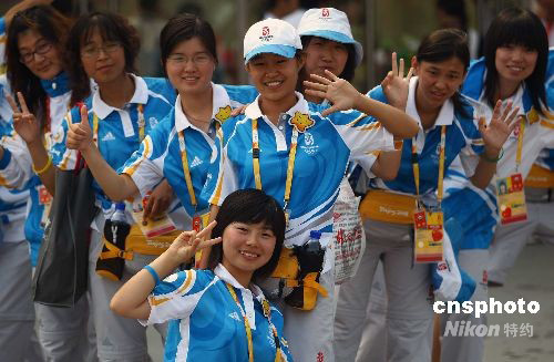 8月24日下午,一群完成奧運(yùn)服務(wù)工作,即將離開奧林匹克公園的年輕志愿者在鳥巢附近合影留念。當(dāng)晚,北京奧運(yùn)會(huì)閉幕式將在國(guó)家體育場(chǎng)“鳥巢”舉行。中新社發(fā) 劉新 攝