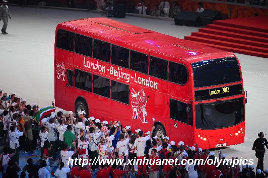 圖:倫敦巴士開進(jìn)閉幕式會場