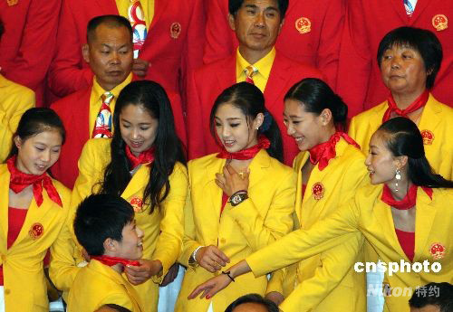 8月26日,2008年北京奧運會中國體育代表團總結(jié)大會在北京人民大會堂金色大廳舉行。中國藝術體操隊員參加北京奧運會中國體育代表團總結(jié)大會。 中新社發(fā) 廖文靜 攝