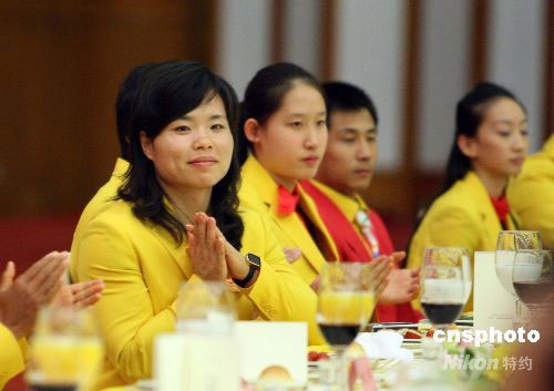 圖:陳艷青參加北京奧運(yùn)中國體育代表團(tuán)慶祝宴會