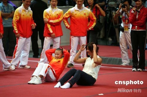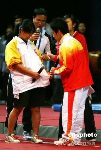 北京奧運會內地金牌運動員代表團在香港伊麗莎白體育館作示范表演,并與青少年同樂。中新社發(fā) 洪少葵 攝