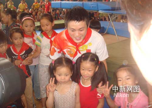 回到常州家中看望爸媽的奧運(yùn)冠軍陸春龍,今天在母校江蘇常州少兒體校儼然成了偶像明星,就連中午與親朋好友及恩師團(tuán)聚的飯桌上,飯店的服務(wù)員也沒有放棄這個(gè)可以“親密接觸”奧運(yùn)冠軍的機(jī)會(huì),紛紛要求合影、簽名,使得陸春龍的手只能拿筆而不能拿筷子。雖然簽名簽到手發(fā)麻,但陽光的笑容始終定格在“蹦床王子”的臉上。