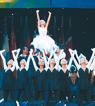 隨著法國作曲家拉威爾的《波萊羅舞曲》悠然響起,一位手拿紅色芭蕾舞鞋的小姑娘出現(xiàn)在9月6日晚“鳥巢”的聚光燈下。她,就是在汶川地震中失去左腿的“芭蕾女孩”李月。坐在輪椅上,李月圓了自己的“芭蕾夢”,繼續(xù)著自己“永不停跳的舞步”。