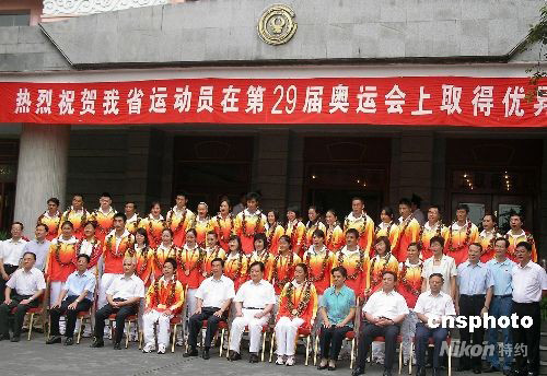 圖為四川省主要領(lǐng)導(dǎo)與奧運(yùn)健兒合影。