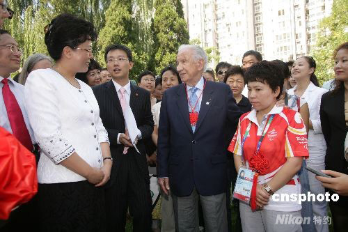 圖:薩馬蘭奇參觀北京東四奧林匹克社區(qū)公園