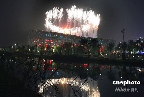 圖:殘奧閉幕式上絢麗焰火映照“鳥巢”(3)