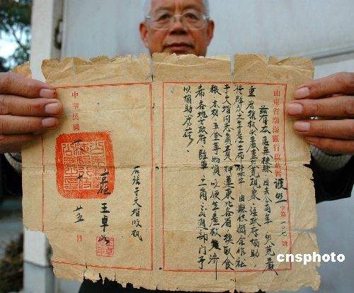 圖:解放區(qū)罕見“護(hù)照”現(xiàn)身山東濱州