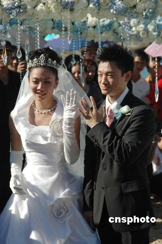 圖:楊威楊云互為對(duì)方佩戴新婚戒指