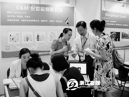 在現(xiàn)場(chǎng),記者了解到,韓國(guó)的化妝品企業(yè)是最受歡迎的。一位美容行業(yè)的林小姐告訴記者,她是專(zhuān)程到現(xiàn)場(chǎng)看韓國(guó)化妝品的,尋找有合作意向的韓國(guó)企業(yè)。這次展會(huì)上有好些韓國(guó)化妝品企業(yè),她找了兩家適合她的顧客群的化妝品公司,談了初步意向,打算再抽時(shí)間細(xì)談,或許地點(diǎn)會(huì)是在韓國(guó)。