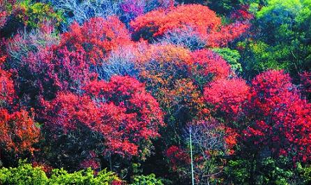 “今天我們幾個(gè)同事相約來爬清源山!眮碜越鞯膩砣輨(wù)工人員劉小姐告訴記者,久聞清源山是泉州較著名的旅游景點(diǎn),她和公司同事特意從晉江來到清源山游玩,順便欣賞醉人的紅葉美景。記者發(fā)現(xiàn),雖然看不到漫山遍野一片火紅,但萬綠叢中那斑駁的幾簇紅還是讓人陶醉其中。(泉州晚報(bào) 記者陳小陽 吳毅君)