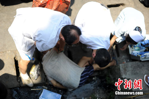 中新網(wǎng)重慶7月30日電(連肖 劉函冉)30日下午14時許,記者路過重慶陳家坪汽車站時看到,一六旬老人倒在車站出站口外的排水溝里!120”急救人員稱,該老人極有可能是因下空調(diào)車后,無法適應(yīng)室外40多度的高溫,突發(fā)心腦血管疾病猝死。