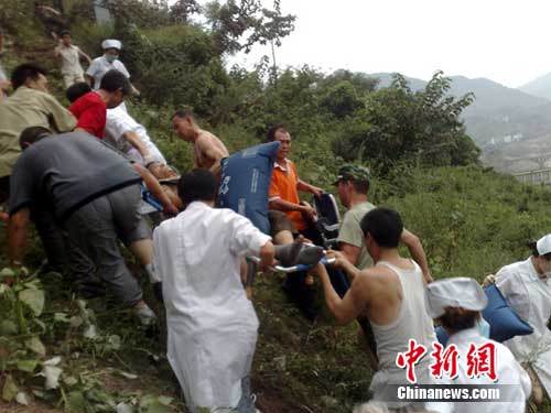 由于出事地點(diǎn)地形十分險要,公路離崖底大約有30米的垂直距離,根本無路可下,情況十分危急,當(dāng)?shù)卮迕竦膮f(xié)助下找來鋤頭、鐵鍬迅速打開了一條臨時“生命通道”,趕到現(xiàn)場救援的消防官兵帶上破拆工具鉆進(jìn)車內(nèi)搜救幸存者,傷者被找到并用腰帶將傷者固定在擔(dān)架上,在當(dāng)?shù)卮迕窈偷膮f(xié)助下,用接力的方式抬著擔(dān)架,將傷者抬上路面,并立即送往縣內(nèi)各大醫(yī)院進(jìn)行急救。趕到現(xiàn)場的醫(yī)務(wù)人員判斷,車內(nèi)有一些已無生命跡象。