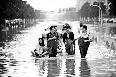 救災(zāi)辦工作人員告訴北青報(bào)記者,救災(zāi)物資現(xiàn)在還比較充裕,前天剛接收了7000箱礦泉水,運(yùn)輸問題成為難點(diǎn)。很多道路不暢通,一部分是因?yàn)榉e水過多,一部分因避災(zāi)車輛、拋錨的故障車阻塞立交橋,車輛無人認(rèn)領(lǐng)。對(duì)這種車輛,首先從交警處聯(lián)系車主,實(shí)在沒有辦法的用拖車拖到路邊。另外,部分受災(zāi)區(qū)域積水深度也很尷尬,“70厘米的水深,沖鋒舟、皮劃艇都駛?cè)氩涣耍俗哌M(jìn)去又全都濕透!