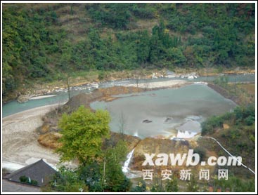 10月29日,記者在寧強(qiáng)縣代家壩鎮(zhèn)采訪時,驅(qū)車沿黑水河自東向西逆流而上,一路上看到,黑水河邊沉淀著一些廢棄的礦渣。群眾說,這都是同強(qiáng)礦業(yè)有限責(zé)任公司(簡稱同強(qiáng)公司)排放的礦渣。在距代家壩鎮(zhèn)約1公里處能看到位于該鎮(zhèn)王家灣村的同強(qiáng)公司,拉運礦石的卡車來回穿梭,廠區(qū)上空煙塵飛揚,生產(chǎn)車間里機(jī)器轟鳴聲不絕于耳。記者看到,一根水桶粗細(xì)的白色塑料管從公司后山直泄而下,渾濁的污水在沉淀庫內(nèi)稍作停留后,就直接排入黑水河,河水頓時變得渾濁起來。黑水河是沿河兩岸數(shù)萬群眾的水源河。