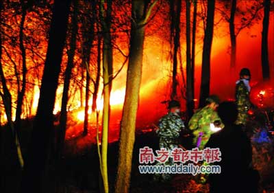 昨日凌晨0時(shí)許,廣州白云區(qū)太和鎮(zhèn)東坑塘山與京珠高速接駁處山頭陷入火海,火勢(shì)一度蔓延至山腳,威脅到村莊和京珠高速。接警后,市森林防火指揮部帶領(lǐng)5支森林防火大隊(duì),在市消防、太和鎮(zhèn)消防的協(xié)助下,采用高壓水車(chē)與水泵串連的先進(jìn)技術(shù),實(shí)施夜間遠(yuǎn)程滅火,40分鐘內(nèi)控制火勢(shì),確保了山腳眾多村莊的安全和京珠高速的正常通車(chē)。白云警方在現(xiàn)場(chǎng)抓獲一名疑患精神類疾病的男子,后證實(shí)山火正是因其無(wú)意縱火而致,該男子目前已被拘留。
