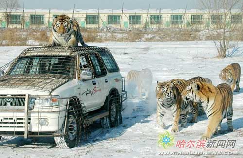東北虎林園的負(fù)責(zé)人表示,虎園從管理上按照東北虎的獸齡、種族進(jìn)行調(diào)整劃分。目前園內(nèi)共有9個(gè)區(qū),之間都用5米高的鐵絲網(wǎng)隔開(kāi),每個(gè)園區(qū)的老虎都是從小被關(guān)在一起長(zhǎng)大的,輕易不會(huì)發(fā)生打斗,只有發(fā)情期才會(huì)有些沖突。另外,虎園老虎每天定時(shí)進(jìn)食一次,通常食物是牛肉和雞骨架,偶爾投放一些活雞、羊、牛是鍛煉它們的抓捕能力;為了鍛煉野性,每周固定一天對(duì)它們進(jìn)行饑餓訓(xùn)練。1996年,東北虎林園從橫道河子搬到現(xiàn)址時(shí)只有8只東北虎。在十幾年里已經(jīng)繁殖到800多只。這么多年來(lái),從未因?yàn)榘ゐI發(fā)生老虎互相殘殺現(xiàn)象。(作者 羅彥坤 白林鶴)