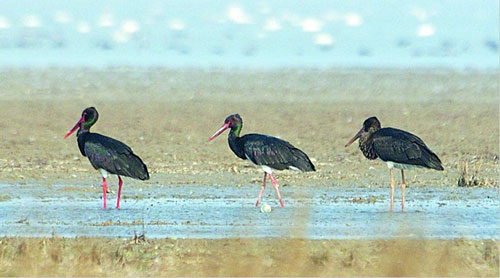 “黑鸛、白枕鶴、東方白鸛都是極為珍稀的候鳥群類!蔽鞫赐ズ匀槐Wo區(qū)工作人員告訴記者,黑鸛屬于鸛形目、鸛科、鸛屬,在我國東北、河北、新疆及甘肅北部繁殖,到長江流域及以南地區(qū)越冬,屬于國家一級重點保護動物。黑鸛在全球的總數(shù)量僅存3000只左右,東部種群遷徙途中的數(shù)量僅存100余只。