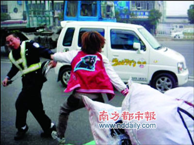 據(jù)目擊者介紹,約半個(gè)小時(shí)后,拖車人員趕到現(xiàn)場(chǎng),該婦女看到自己的車輛將要被拖走,情緒顯得更加激動(dòng),該女子一邊阻止拖車人員拖車,一邊破口大罵執(zhí)勤民警,繼而動(dòng)手扭打,追打民警至馬路中央,扯住民警的制服,造成民警頭部、手腕、前胸等部位受傷!疤珒戳耍司痛!”一個(gè)現(xiàn)場(chǎng)目擊者稱,該女子就像發(fā)了狂一樣,逮著誰(shuí)打誰(shuí),拖車工作人員多次上前勸阻,該女子一律拳腳相向,民警隨即通過(guò)總值請(qǐng)求110協(xié)助。110民警到達(dá)現(xiàn)場(chǎng)后,制止了事件的延續(xù)。