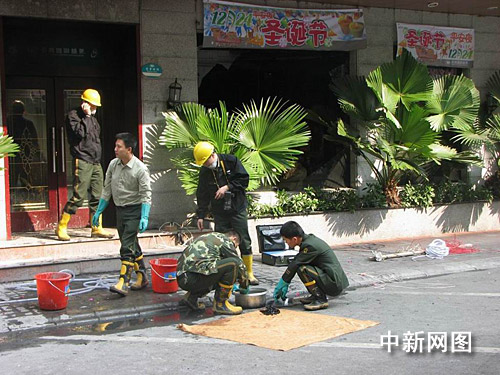記者在現(xiàn)場看到,火災(zāi)現(xiàn)場已被警方封鎖,甚至在距離現(xiàn)場數(shù)百米遠的路口警方也設(shè)置了警戒崗。發(fā)生火災(zāi)的名典西餐廳一片狼藉,西餐廳二樓的玻璃墻已全部破碎,餐廳里的沙發(fā)、桌子大部分被燒壞。此次火災(zāi)約三百三十平方米。