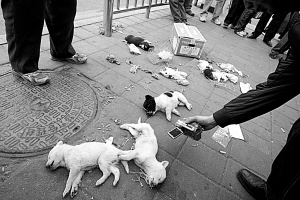 參與執(zhí)法的太平橋城管分隊(duì)執(zhí)法組組長李琦說,這是無照商販以殺小動(dòng)物抗法。