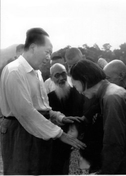 1959年夏天,毛澤東在家鄉(xiāng)韶山親撫毛小青姐弟。資料照片