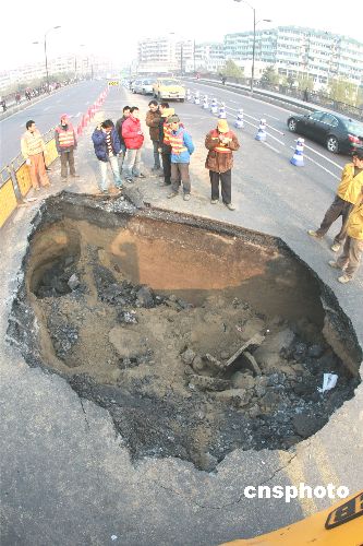 杭州路橋公司市政道橋養(yǎng)護處的工作人員介紹,他們是在凌晨一點左右發(fā)現(xiàn)情況的,當時橋面產生2-3平方米的塌陷。據調查,是由于路面長期受壓導致底下水管漏水,造成泥土流失,從而形成塌陷。