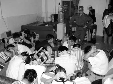 2007年7月24日零時許,當(dāng)公安干警來到賭場樓下時,由于大門緊閉,東方市邊防支隊的10名身著便裝的民警想扮成賭徒混進(jìn)賭場,但被戒備心強(qiáng)的看場子人員擋了出來。民警只好采取強(qiáng)攻的辦法。東方市邊防支隊指派兩名民警翻墻入院內(nèi)打開大門,并率先沖向賭場的三樓,其余民警也緊隨其后沖進(jìn)賭場。警方當(dāng)場抓獲參賭人員和為賭場服務(wù)的人員共61人,其中有賭場老板林軍、“看場”人員鄭永武、李道武和湯榮福,賭場的服務(wù)人員20人,參賭人員37人,繳獲人民幣100374元等。